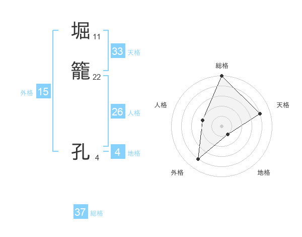 堀籠 孔さんの総格は37画の5点!