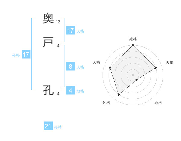 奥戸 孔さんの天格は17画の4点!
