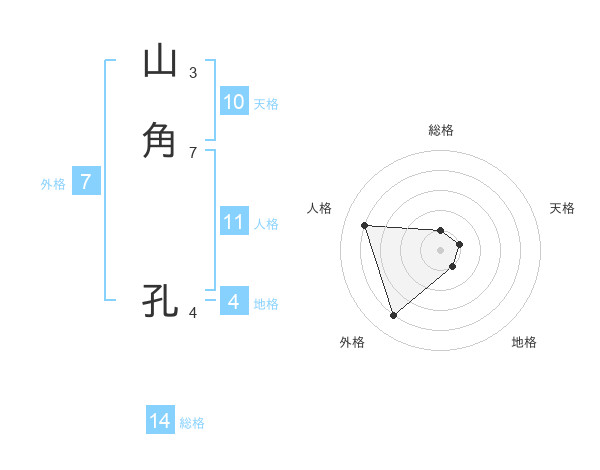 山角 孔さんの総格は14画の1点!