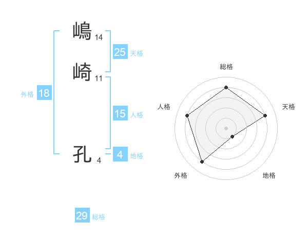 嶋崎 孔さんの総格は29画の4点!
