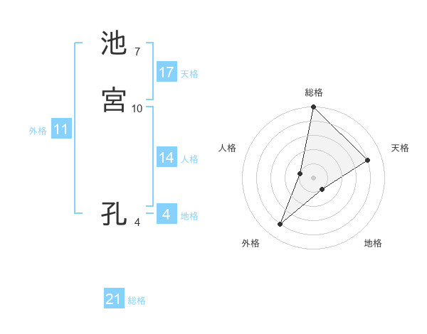 池宮 孔さんの総格は21画の5点!