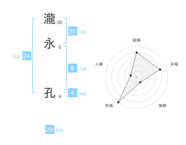 瀧永 孔さんの総格は29画の4点!