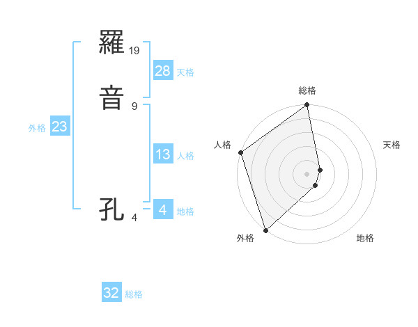 羅音 孔さんの総格は32画の5点!