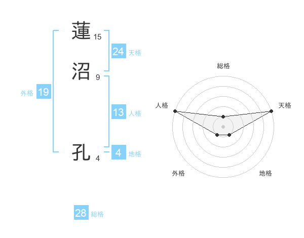 蓮沼 孔さんの天格は24画の5点!