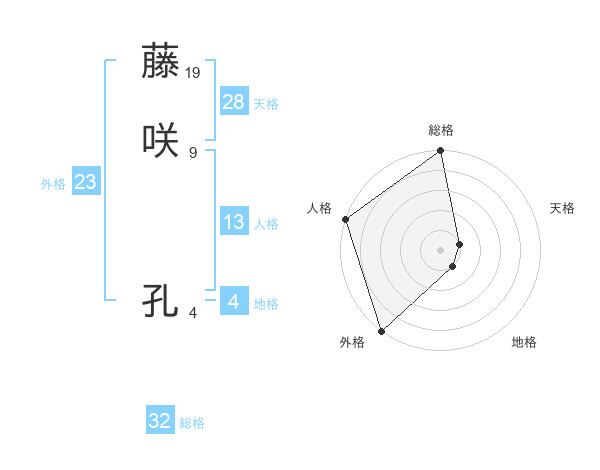 藤咲 孔さんを姓名の画数から五運を鑑定