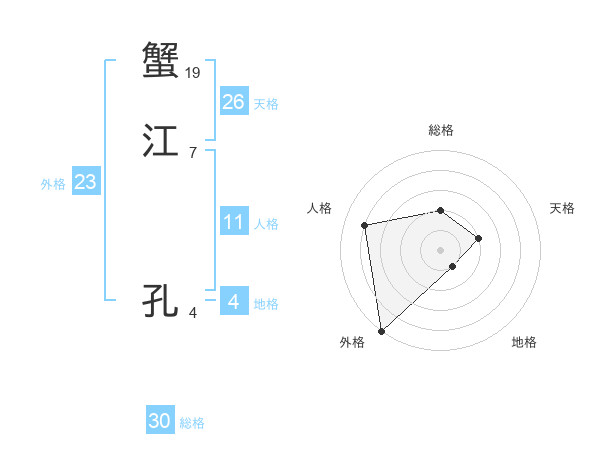 蟹江 孔さんを姓名の画数から五運を鑑定