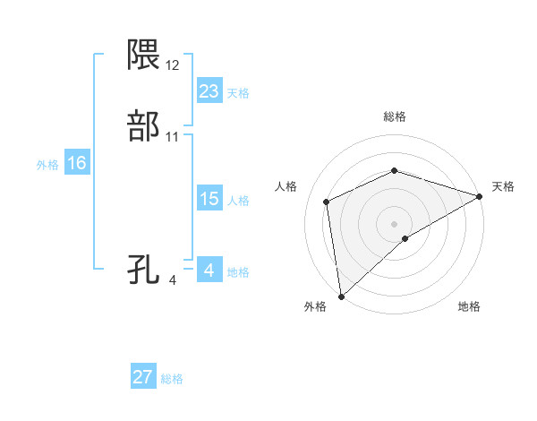 隈部 孔さんの天格は23画の5点!