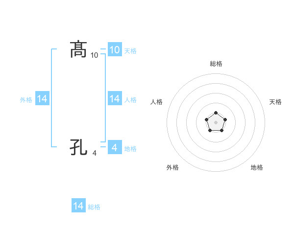 髙 孔さんの総格は14画の1点