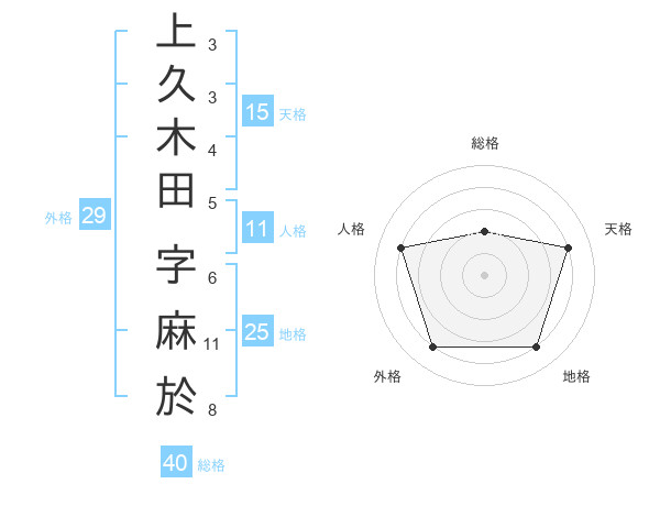 上久木田 字麻於さんを姓名の画数から五運を鑑定