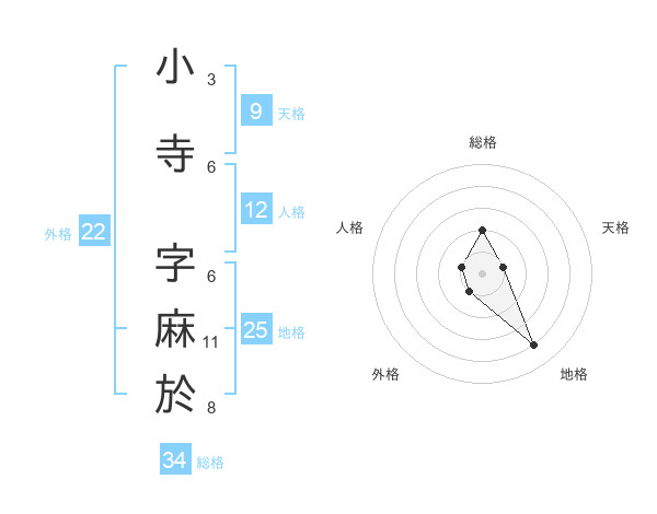 小寺 字麻於さんを姓名の画数から五運を鑑定