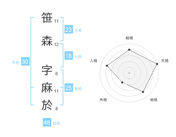笹森 字麻於さんの天格は23画の5点!