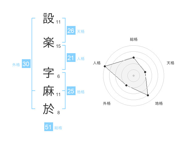 設楽 字麻於さんを姓名の画数から五運を鑑定