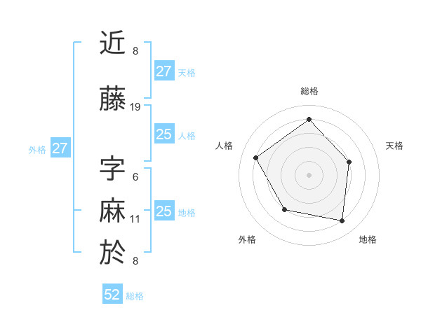近藤 字麻於さんを姓名の画数から五運を鑑定