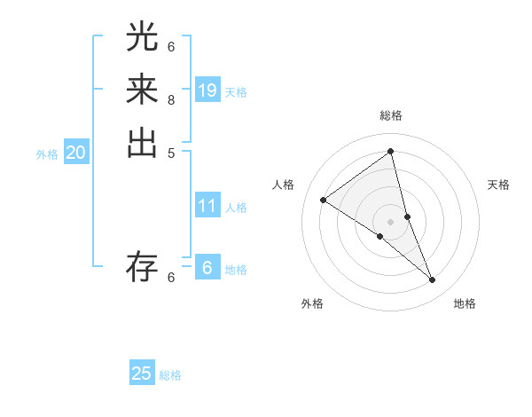 光来出 存さんの総格は25画の4点!