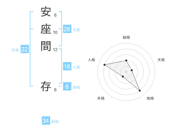 安座間 存さんの総格は34画の2点!