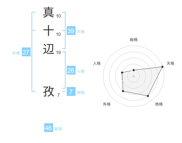 真十辺 孜さんの天格は39画の5点!