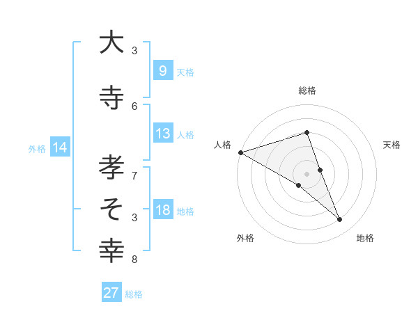 大寺 孝そ幸さんを姓名の画数から五運を鑑定
