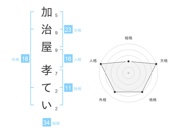 加治屋 孝ていさんを姓名の画数から五運を鑑定