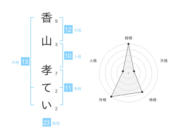 香山 孝ていさんを姓名の画数から五運を鑑定