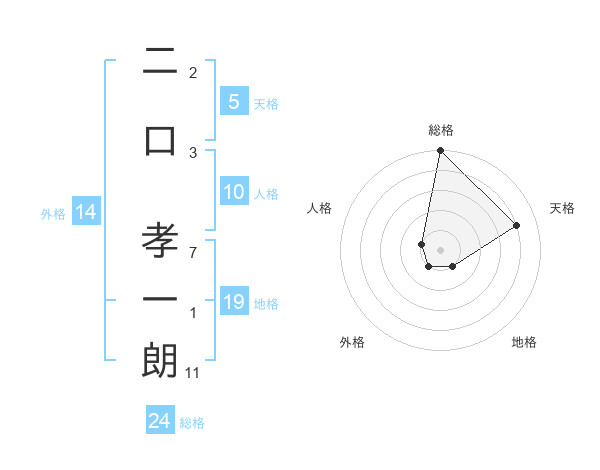 二口 孝一朗さんを姓名の画数から五運を鑑定