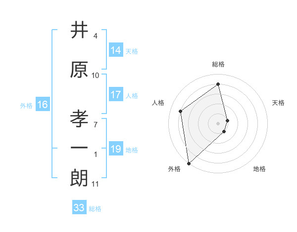 井原 孝一朗さんを姓名の画数から五運を鑑定