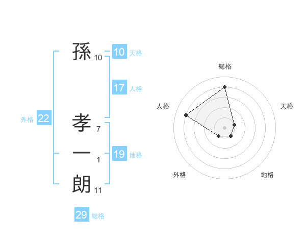 孫 孝一朗さんを姓名の画数から五運を鑑定