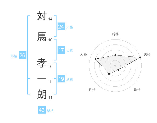 対馬 孝一朗さんを姓名の画数から五運を鑑定
