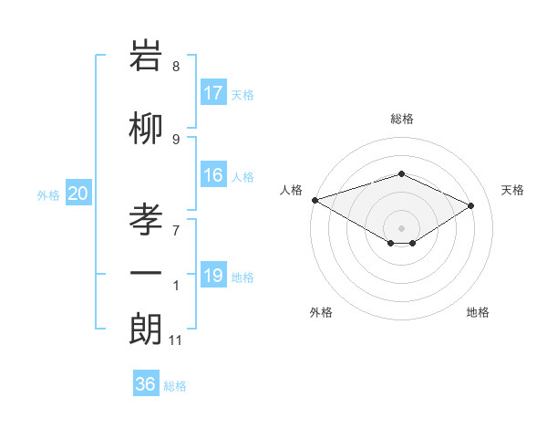 岩柳 孝一朗さんの天格は17画の4点!