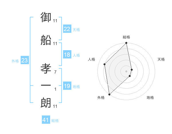 御船 孝一朗さんを姓名の画数から五運を鑑定
