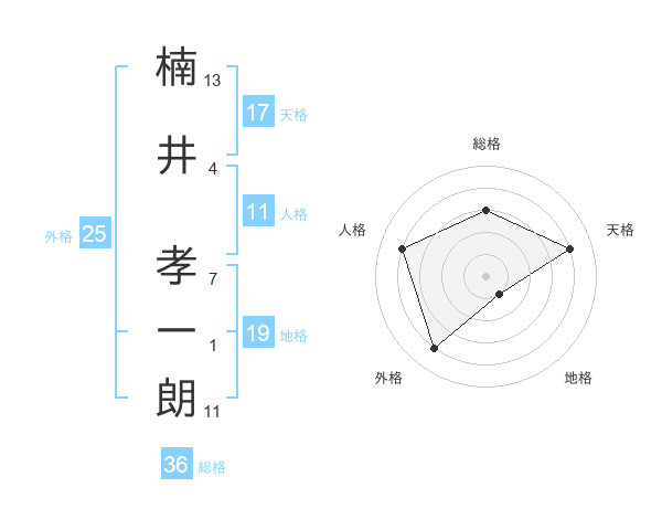 楠井 孝一朗さんを姓名の画数から五運を鑑定