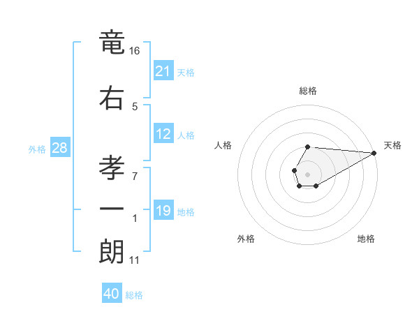 竜右 孝一朗さんの天格は21画の5点!