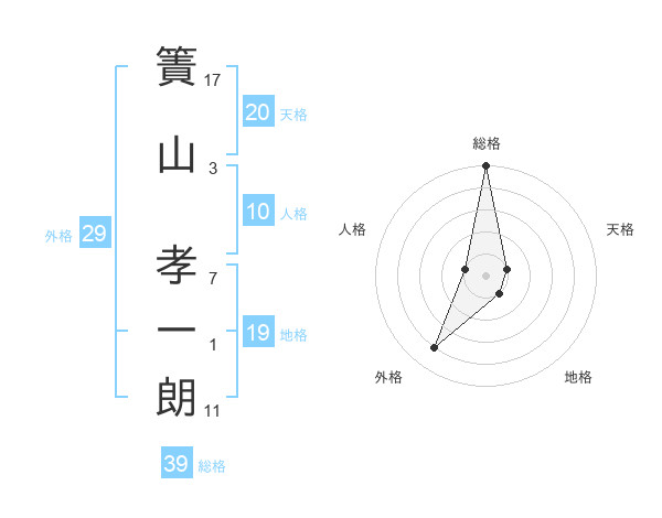 簀山 孝一朗さんの総格は39画の5点!