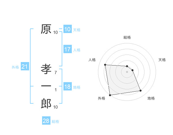 原 孝一郎さんの外格は21画の5点!