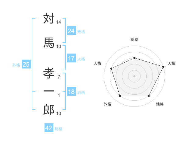 対馬 孝一郎さんの天格は24画の5点!