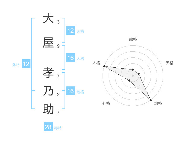 大屋 孝乃助さんの地格は16画の5点!