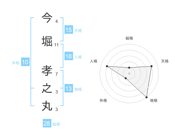 今堀 孝之丸さんを姓名の画数から五運を鑑定