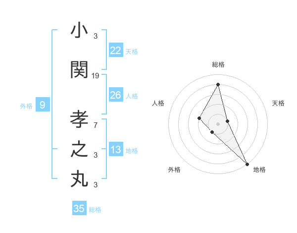 小関 孝之丸さんを姓名の画数から五運を鑑定