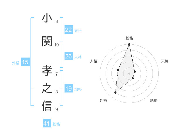 小関 孝之信さんを姓名の画数から五運を鑑定