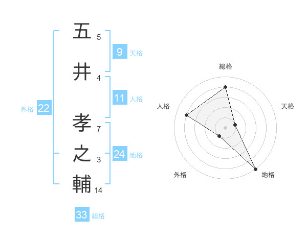 五井 孝之輔さんを姓名の画数から五運を鑑定