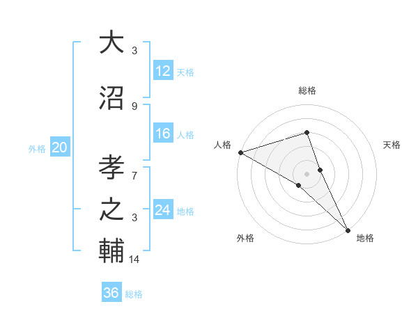 大沼 孝之輔さんを姓名の画数から五運を鑑定