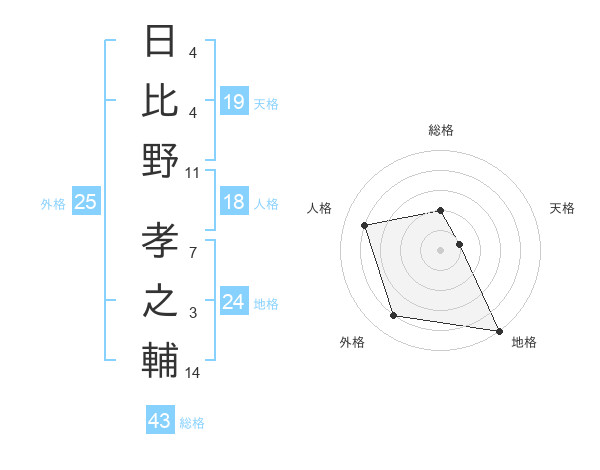 日比野 孝之輔さんを姓名の画数から五運を鑑定