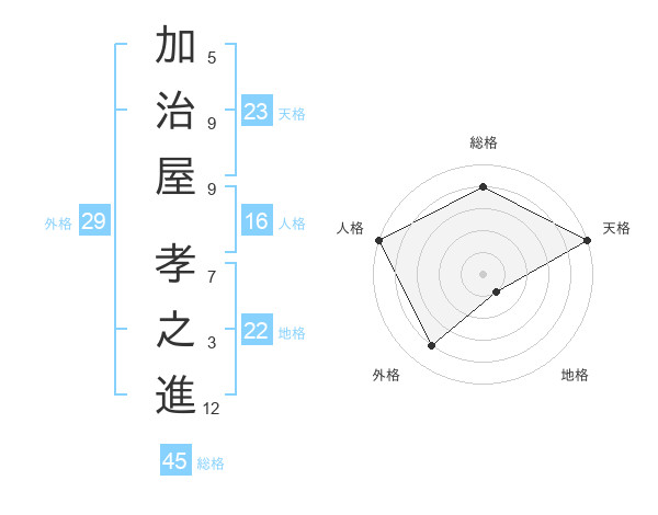 加治屋 孝之進さんの総格は45画の4点!