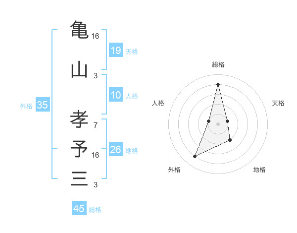 亀山 孝予三さんの外格は35画の4点!