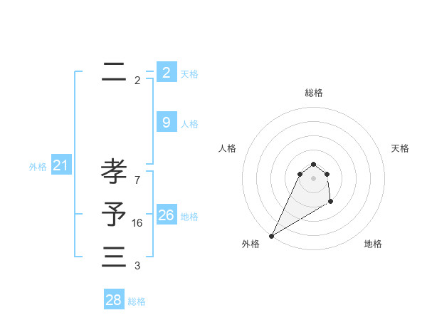 二 孝予三さんの外格は21画の5点!