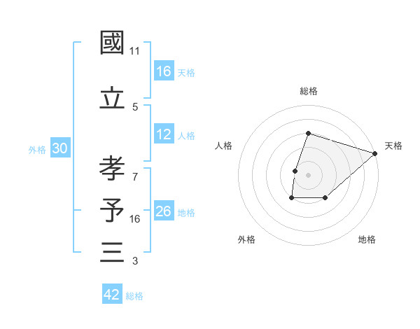 國立 孝予三さんの天格は16画の5点!