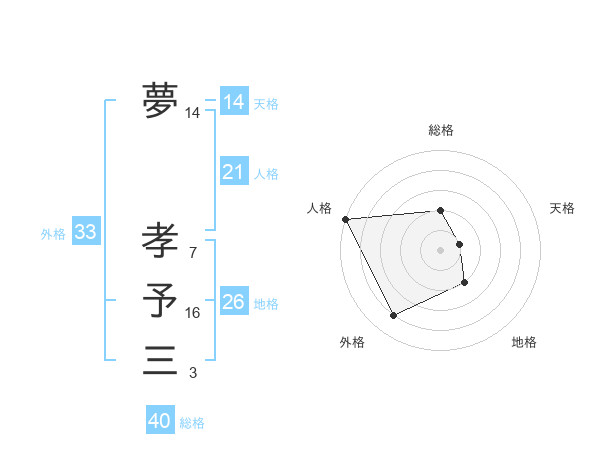 夢 孝予三さんを姓名の画数から五運を鑑定
