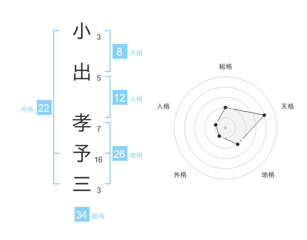 小出 孝予三さんの総格は34画の2点!