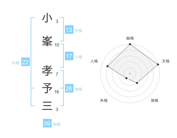 小峯 孝予三さんを姓名の画数から五運を鑑定