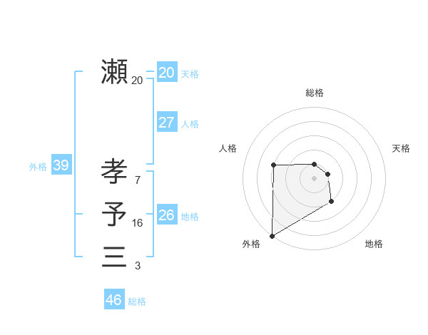 瀬 孝予三さんの外格は39画の5点!