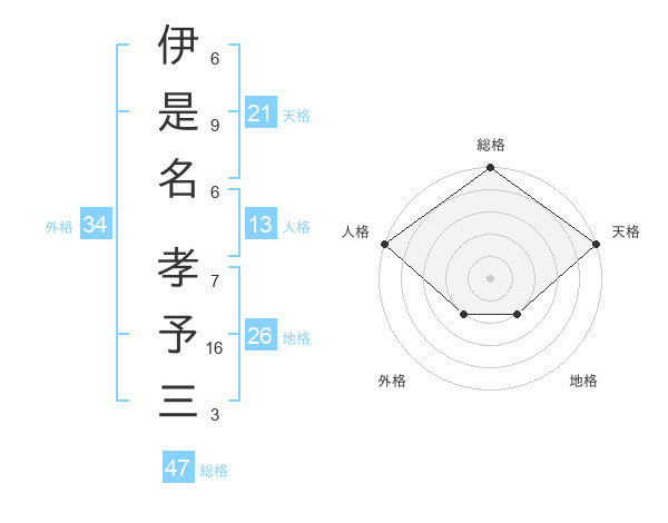 伊是名 孝予三さんの総格は47画の5点!